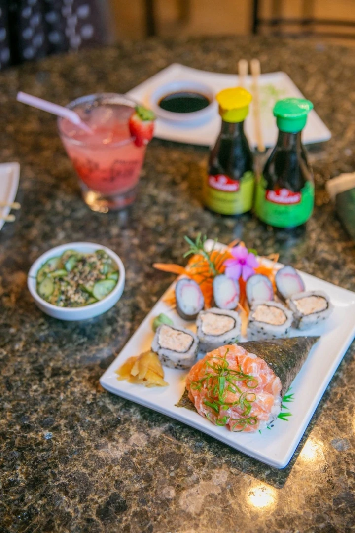 02 Sunomonos, 01 Temaki Simples, 06 Sashimis Variados, 04 Niguiris Skin, 04 Uramakis de Salmão com cream cheese, 04 Uramakis de salmão grelhado, 04 Hossomakis de Kani e 05 Hot Rolls de Salmão.