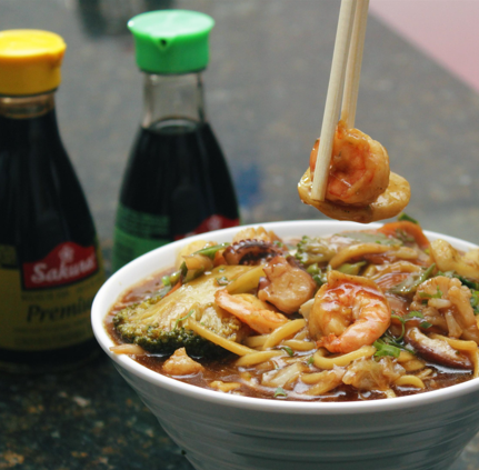 (Macarrão de Arroz com Camarão e Curry )