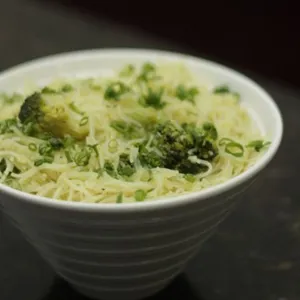 (Macarrão de Arroz com Brócolis ,Azeite e Alho)